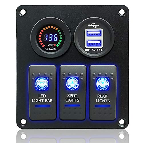 Consumer Reviews IZTOSS 3 Gang DC12V Switch Panel with 12V Voltage 3.1A Dual USB Voltmeter and Wiring Kits for Marine Boat Car Rv Vehicles Truck Blue led